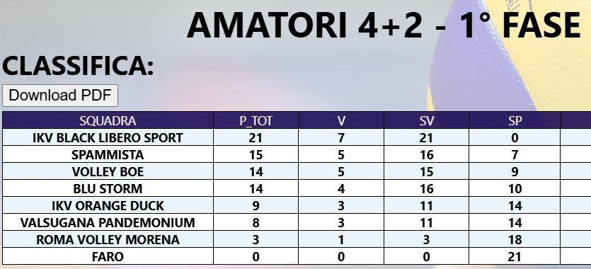 CSEN - Fase 1 - GIRONE A CLASSIFICA FINALE