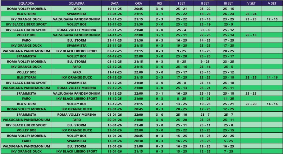 Contro i primi in classifica, sinora imbattuti (0 set persi) campioni uscenti CSEN nel Gold 2024/25. Squadra vera di pallavolo con alti livelii di performance in tutti i fondamentali di gioco e una velocità di palla invero mai sperimentata dal nostro team in questi anni. Pur con le assenze che hanno oggettivamente limitato le soluzioni ed i cambi, ci abbiamo provato a fare qualcosa per impensierirli, ma la distanza è stata sin da subito assai evidente. Ne è venuta fuori una partita...breve. Avversari fuori standard, quindi, ma esperienza utile per comprendere quanto l'asticella possa essere alzata per provare a fare bene e a divertirsi nel nostro volley di nicchia, fatto non solo di amatori ma anche di atleti veri giustamente in cerca di una gloria sfuggita nei tempi Fipav.